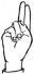 На ћирилици написано МОМИРА ВИДИЋ састоји се из 11 слова [?]. Исписано ћириличном једноручном азбуком за глувонеме: